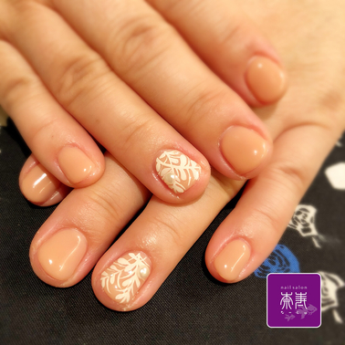OLさんもシンプル派さんもみんな似合うベージュは、シアー系のこちらのジェル!ぱっと見塗ってるかクリアだけなのかわからないような印象です!ワンポイントのラインアートもエレガントで素敵です!