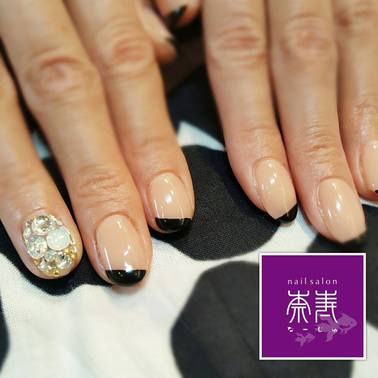 クールな印象に☆ブラックで細め斜めフレンチ