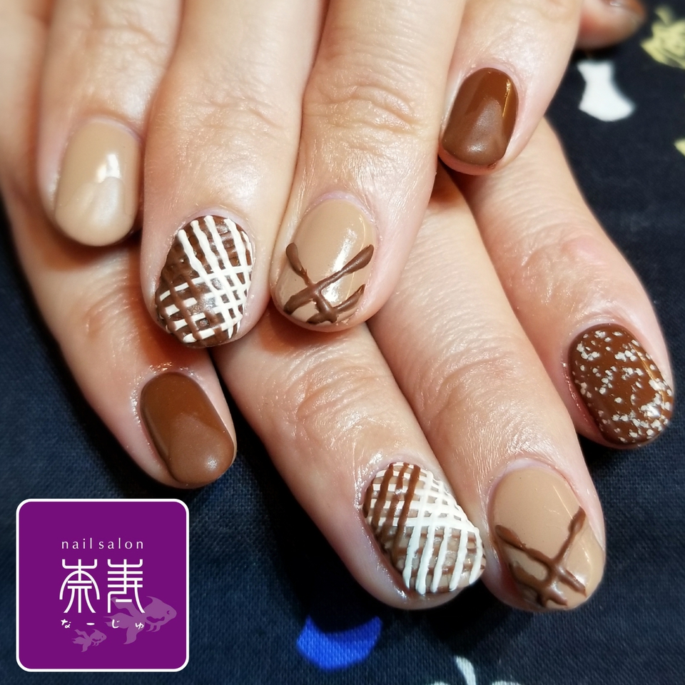 スターダストパウダー(白地にブラウンのハートを描いた爪に