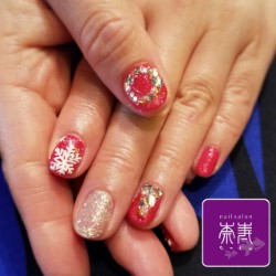ゴールドラメがさりげなく入った赤がクリスマスっぽくてジューシーでかわいいです♡ ツリーやリース、さらに3Dの結晶アートでクリスマスらしいネイルになりました!