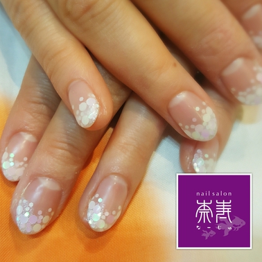 ホワイトの細かいラメのグラデに白のホログラムを先端にしきつめてグラデーションに。 仕上げをマットにしたので、ホロやラメの輝きが控えめになって素敵です☆彡