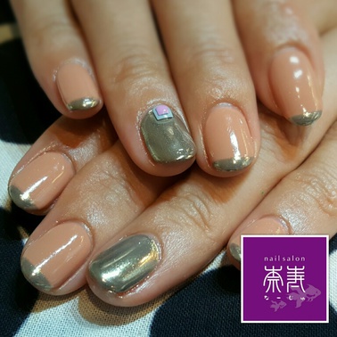 HOME > ネイルギャラリー > ベージュ×ミラーネイル