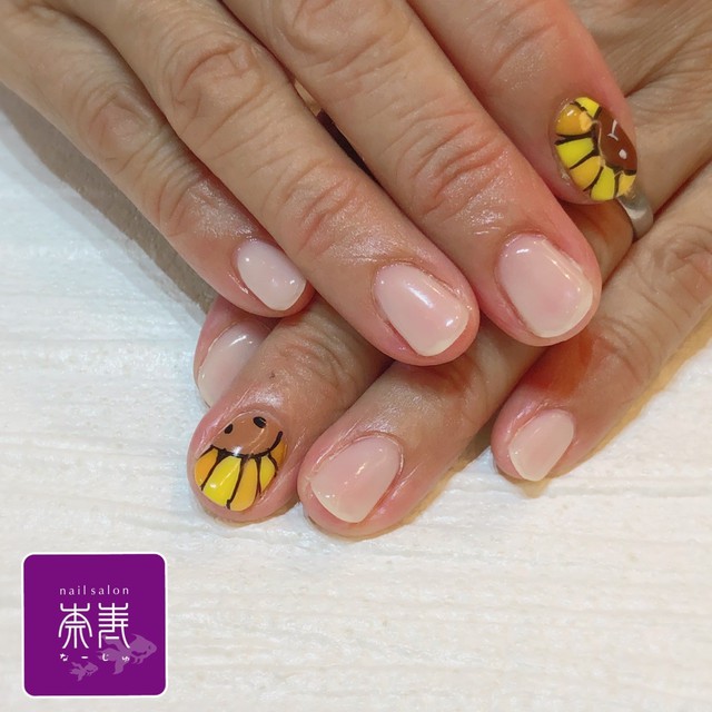 ひまわりネイル、手描きネイル、フラワーネイル