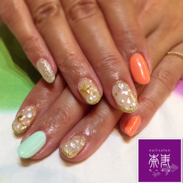 シェル・ラメ・カラーでサマーネイル☆
