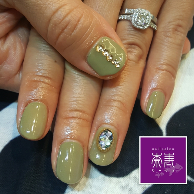 カーキワンカラーネイル