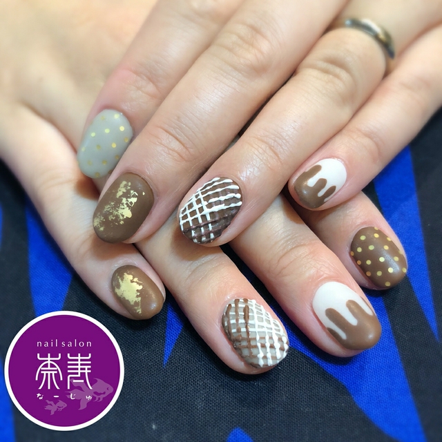 色をあまりたくさん使っていないので、しっくり大人っぽいチョコレートネイルに。